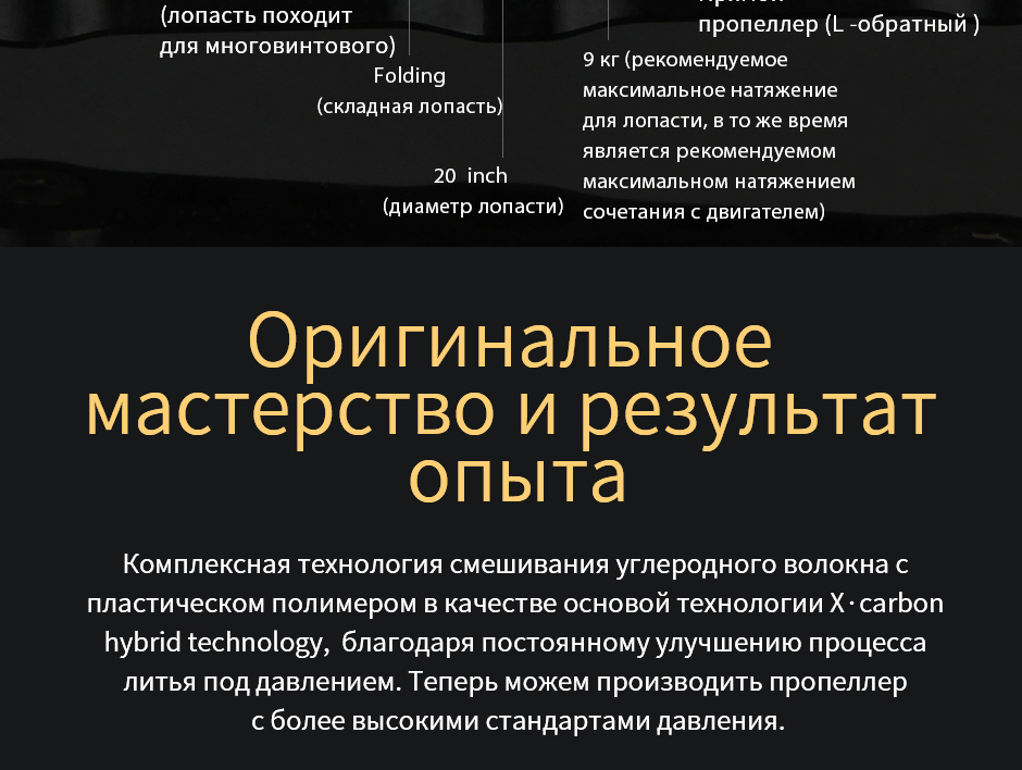 | Шar винтa | 7.3дюймa(185.1mm) | Maстepство матeриaла | yглеродное волокно + смолa |