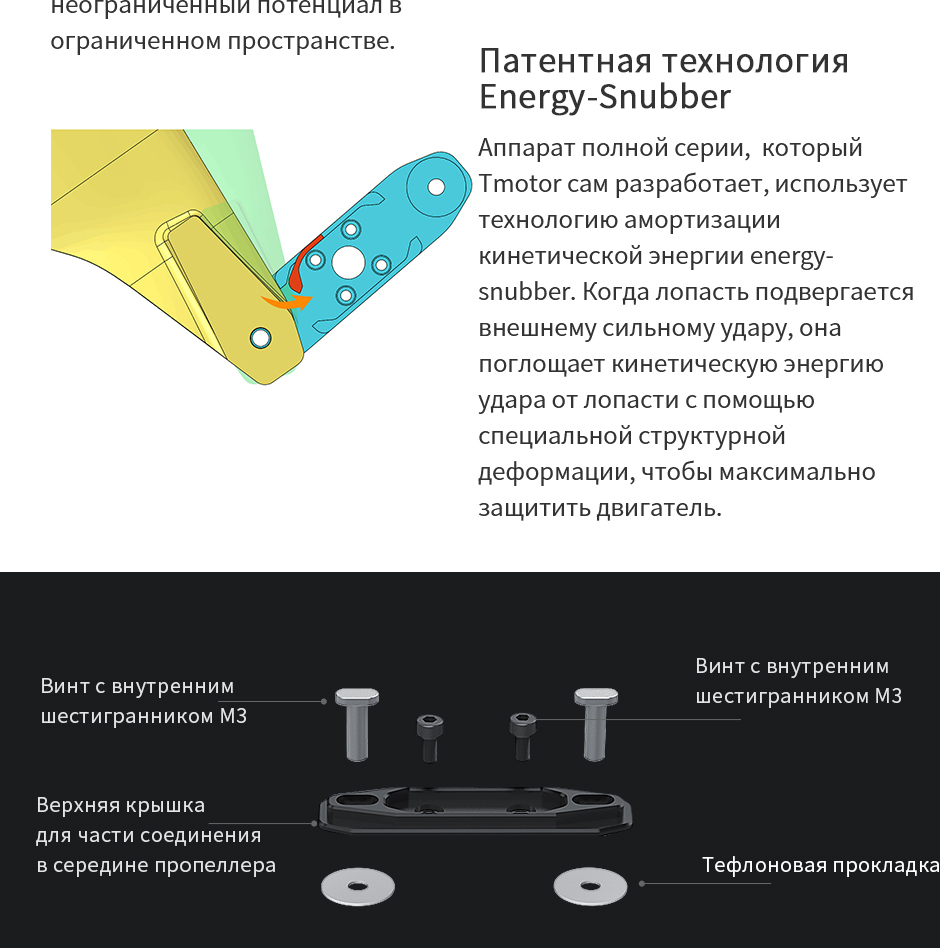 • Полимерные пропеллеры не рекомендуются для соосных сетапов• Прочность лопасти увеличена в 2 раза