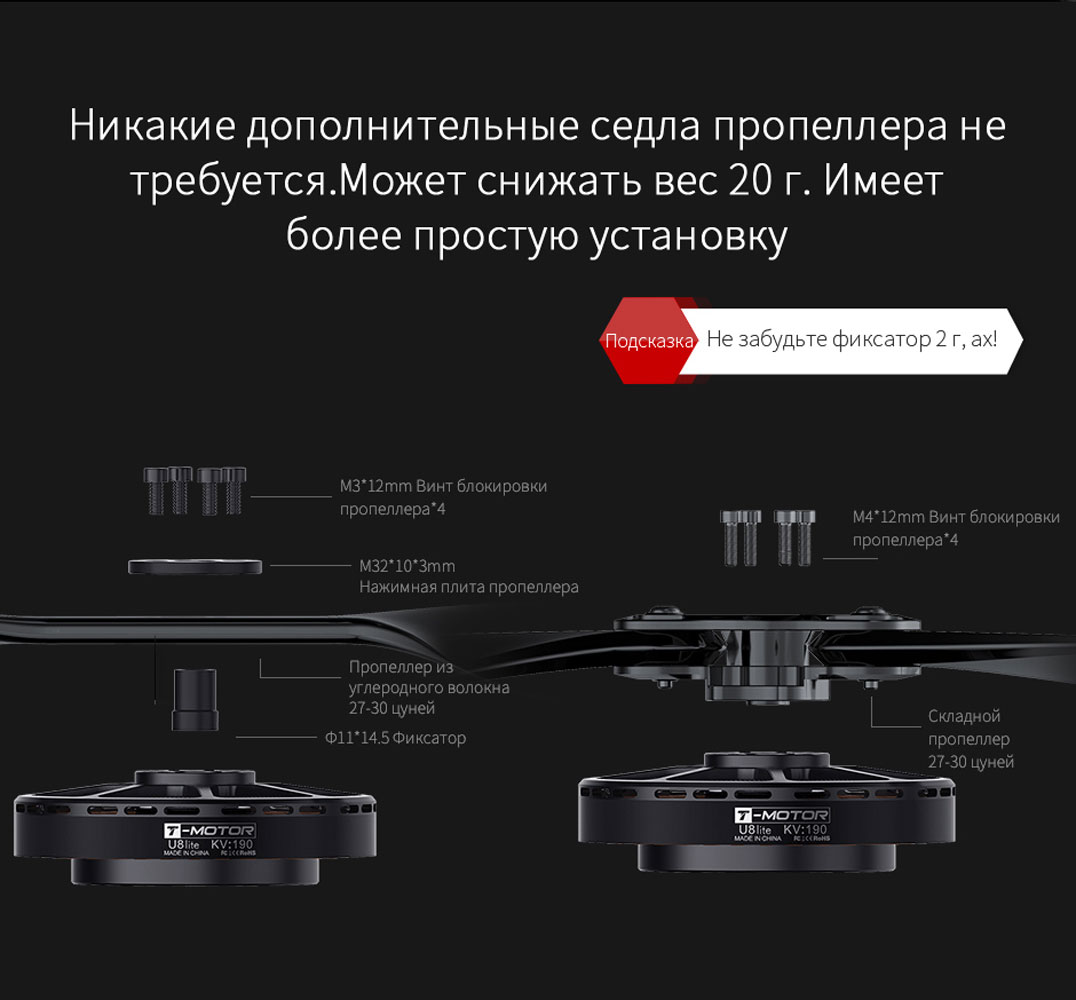 | Вес двигателя (с проводом) | 238g | Пропеллера рекомендации | 27-28" |