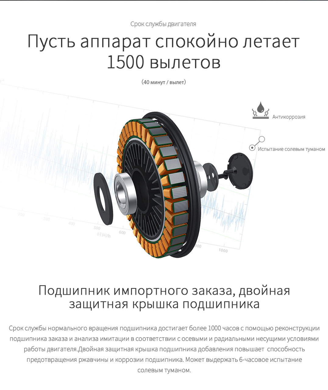 • Более длительный срок службы двигателя, спокойно летает 1500 вылетов